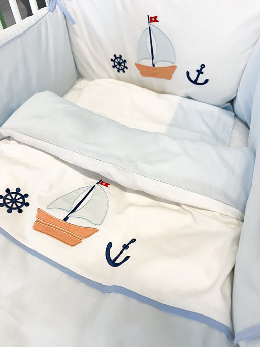3-osainen puuvillasatiininen pinnasänkysetti. Sisältää pussilakanan, reunapehmusteen ja tyynyliinan. Mitat:Pussilakana 100x135cmTyynyliina 40x60Reu...