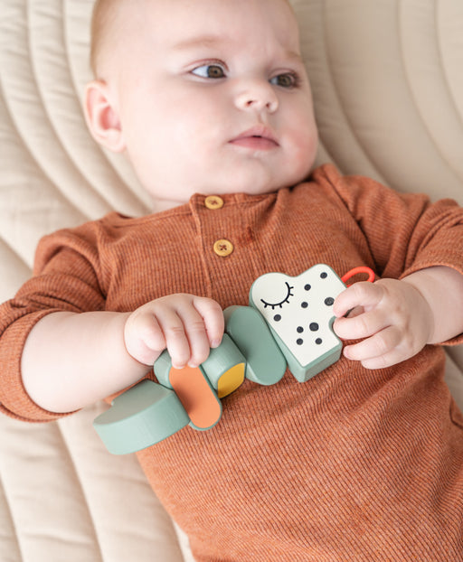Done by Deerin twist & turn -puinen krokotiili on hauska lelu vauvalle. Se sopii 3kk iästä eteenpäin. Sen avulla vauva pääsee hyödyntämään usei...