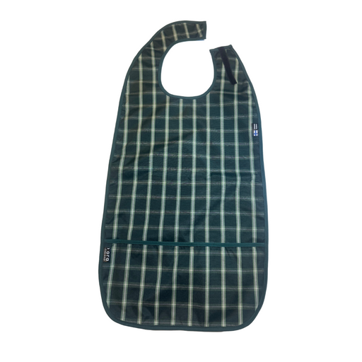 Seniori-ruokalapulla suojaat kätevästi vaatteet ruokailun aikana. Siinä on helppo tarrakiinnitys olkapäällä ja alareunassa muovitettu tasku. Ruokal...