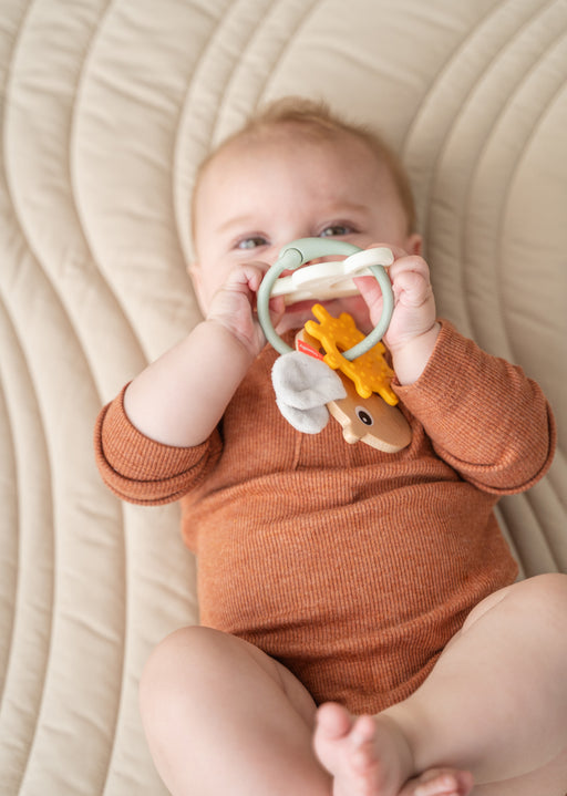 Done By Deerin aktivoiva sensorilelu on suunniteltu stimuloimaan vauvan kaikkia aisteja erilaisilla pinnoilla ja muodoilla. Lelusta löydät puisen O...