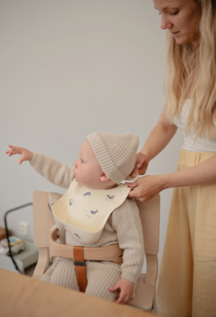 Mushien silikoninen ruokalappu neutraalissa hiekan värissä. Ruokalappu suojaa vaatteet ja kerää tippuvan ruoan. Materiaalinsa ansiosta se on helppo...