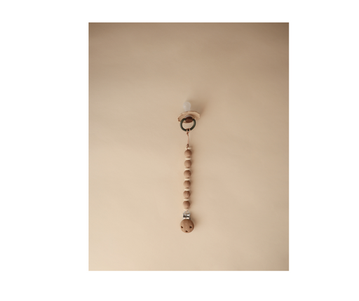 Mushien silikoninen tuttinauha pitää tutin tallessa. Puisessa tuttinauhassa on nyöri, josta sen saa pujotettua renkaallisiin tutteihin, sekä siliko...