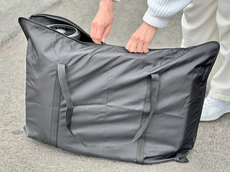 Ora Ainat menevät käsimatkatavarana lentokoneessa. Saat ne kasaan sekunnissa yhdellä kädellä ja mukana tulee kätevä säilytyskassi.