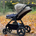Pitkä ja suojaisa kuomu, joka suojaa tehokkaasti myös makuuasennossa.